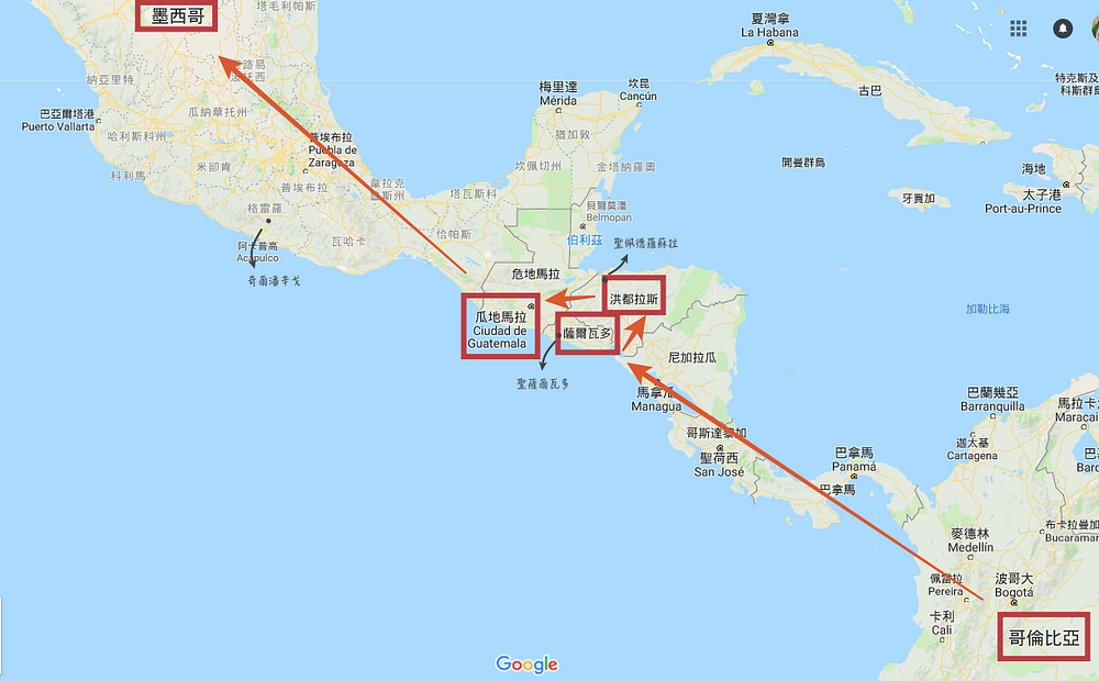 從哥倫比亞(Colombia)出發,經過薩爾瓦多(El Salvador)、洪都拉斯(Honduras)、瓜地馬拉(Guatemala),再到墨西哥。這些地方幫派之間衝突不斷,政府腐敗導致全區都處於高度暴力的氛圍。