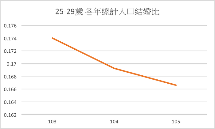 來來來看,25–29歲女性的結婚率就是這樣下降