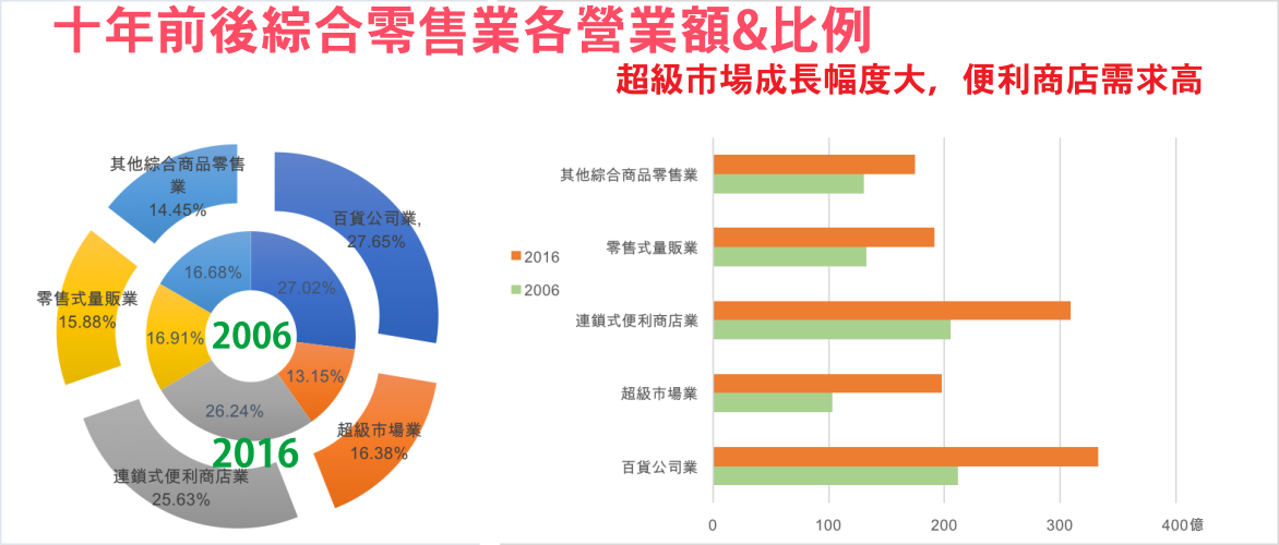 便利超商、超市、大賣場、百貨營收年年搶第一
