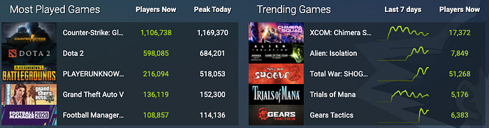 As a public service, here I screenshot the most played games and trending games for your reference. If you feel bored at home, try one to have fun! Remember: Staying Home is Better for now.